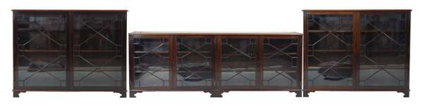 with astragal glazed doors enclosing shelves, raised on bracket feet