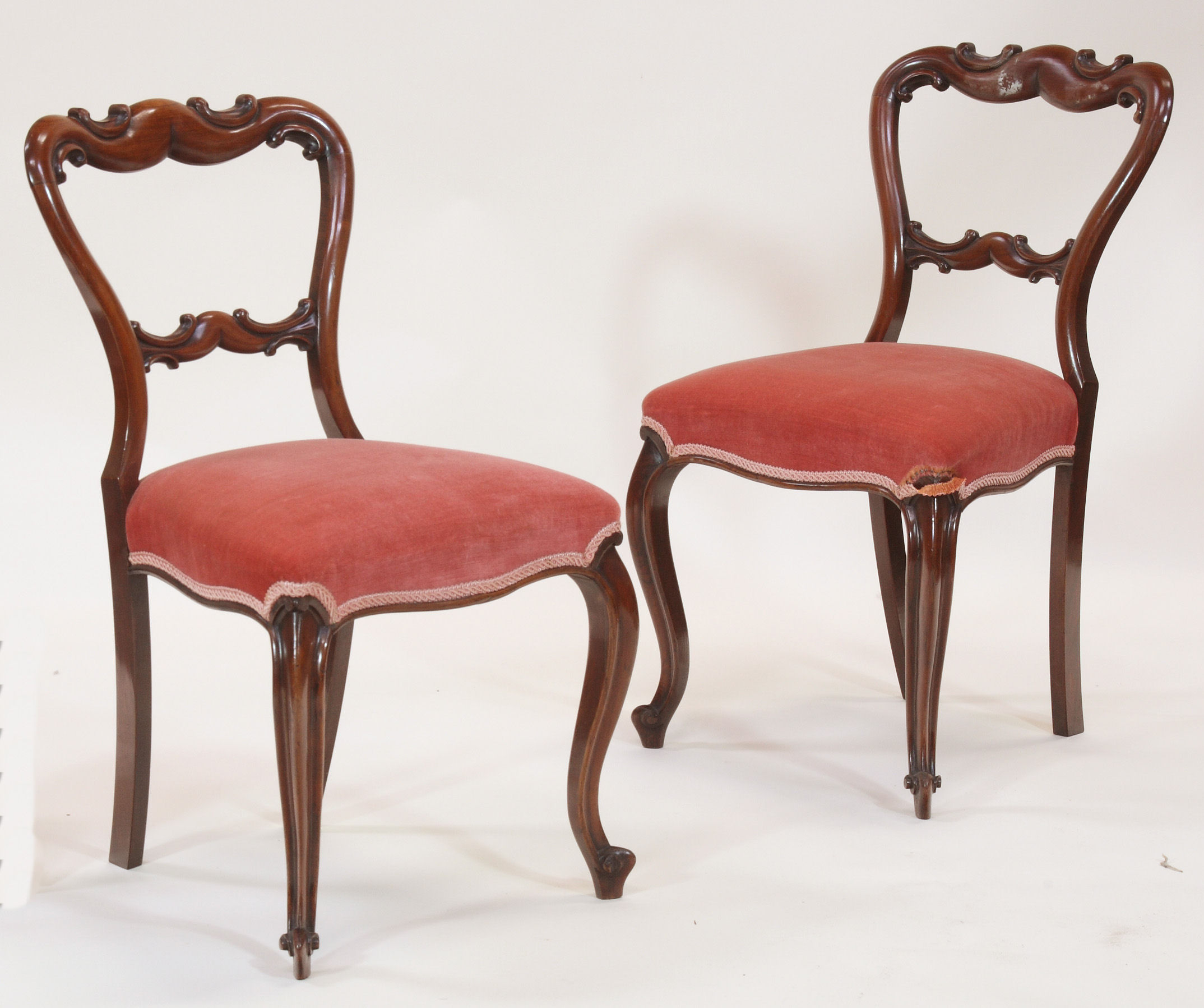 each with moulded top rail over stuffover seat raised on cabriole legs (6)