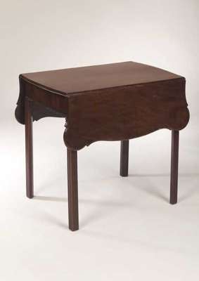 the serpentine rectangular top with lobed corners above frieze with gadrooned border and moulded square section chamfered legs