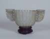 of ribbed circular section with foliate carved handles, on a hard wood stand