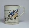 of cylindrical form, decorated with flowers and inscription 'Auld Sparrows are ill to tame'