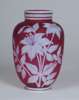 of ovoid form, the cherry red glass cased in white with lily decoration