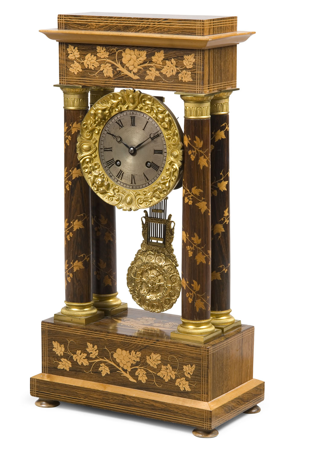 A French marquetry rosewood and gilt metal mounted portico clock, circa 1860
