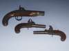with damaged cock and frizen, the brass actions signed, each 17cm long; and a mid 19th century percussion carriage pistol with octagonal barrel, signed 'Dungannon, Kilpatrick', 24cm long (3)