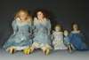 with composite arms and impressed marks 'Ma**** Germany 1900 - 13/0; two wax headed dolls; a peg doll; and a leather doll; with period clothes (qty)