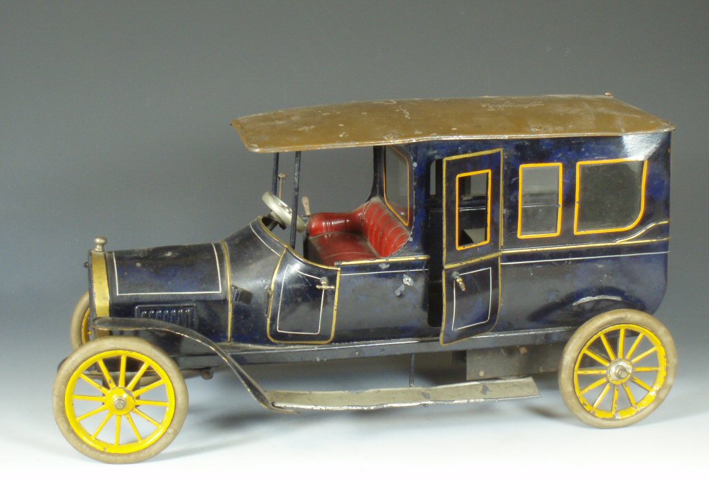 An impressive Bing RH Drive enamelled tinplate clockwork limousine taxi, circa 1914