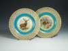 with gilt, cream and turquoise reticulated border, the well painted with a stag, signed 'LB', with impressed marks, 25cm wide; and three other similar plates with damages, printed marks (4)