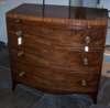 the satinwood banded frieze above a brushing slide and three graduated and cockbeaded drawers with brass pull handles, on shaped apron and splayed bracket feet