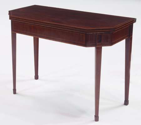 A George III mahogany and inlaid foldover tea table