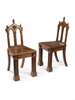 the twin pierced lancet arch backs with carved scrolling foliage, the moulded seats on canted square arch carved legs (2)