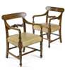 the broad incised backs above reeded anthemion centred middle rails and close nailed tan stuffover seats, on lotus turned legs, united by H-stretchers (4)