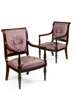 A set of four late 19th century mahogany and upholstered fauteuils, in the Empire style
