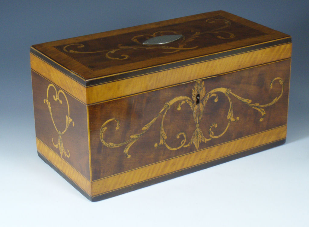 Freemasonry Interest A George III mahogany and satinwood tea caddy