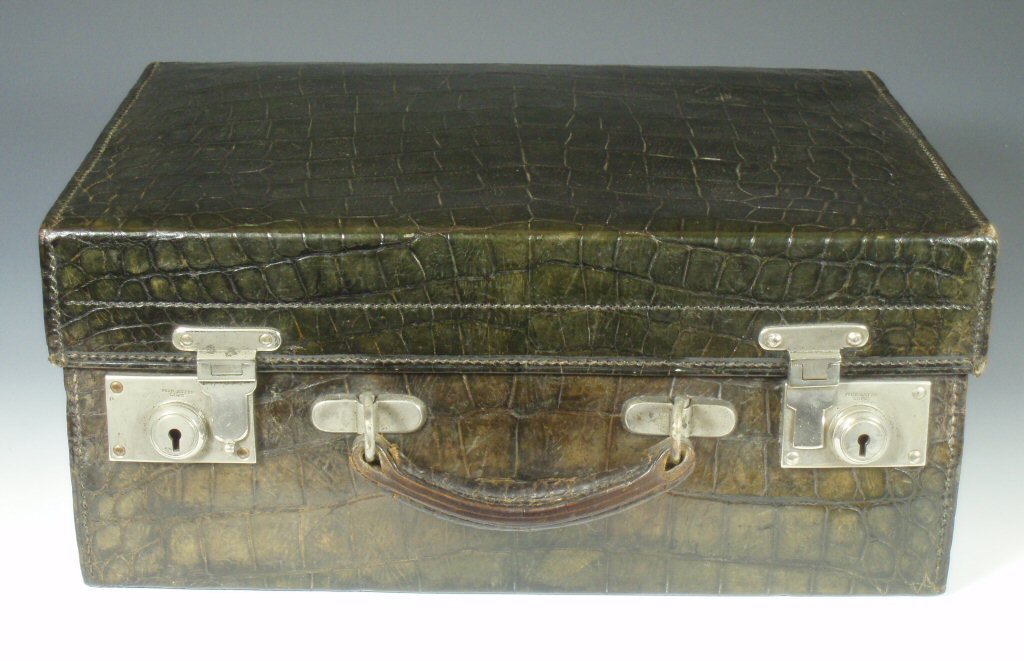 An early 20th century green leather faux-crocodile gentleman's travelling case Stamped 'Army & Navy, G.S.L. Makers, London'