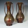 A pair of late 19th century foliate form lacquered bronze bottle vases