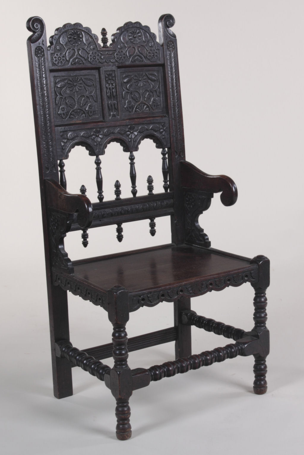 A 17th century carved oak hall chair