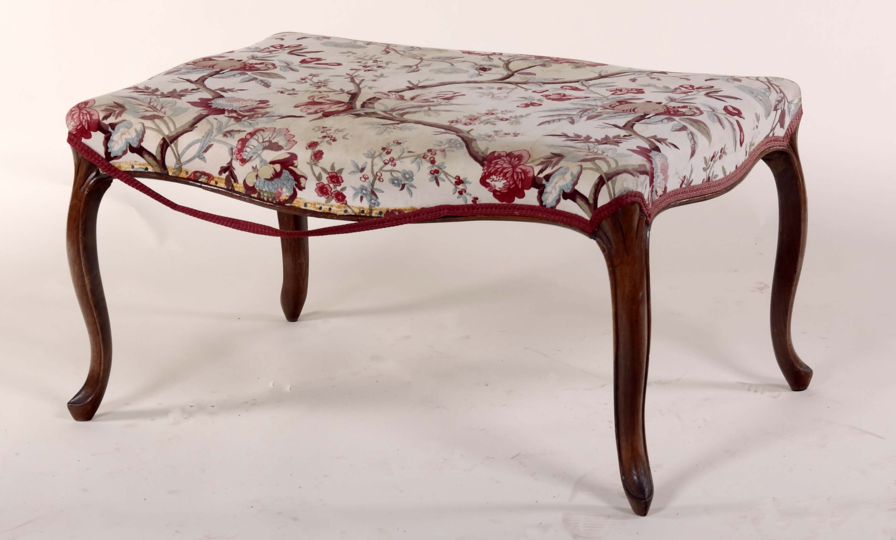 the serpentine cushioned seat raised on cabriole legs terminating in pointed squat cabriole feet