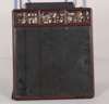 the readed frame with glazed doors and sides, enclosing a combination of shelves,, raised on a stand with cabriole legs terminating in pad feet, united by stretchers; 53cm wide, 69cm high, 16cm deep; including a hardwood oriental framed mirror,the frame with three elaborate pierced carved gilt panels over a bevelled mirror plate; 46cm wide, 52cm high, (2)