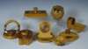 each with town and landscape scenes, comprising: three inkwells; a blotter; a watch stand; a quaich; a cradle; and a globular box (8)