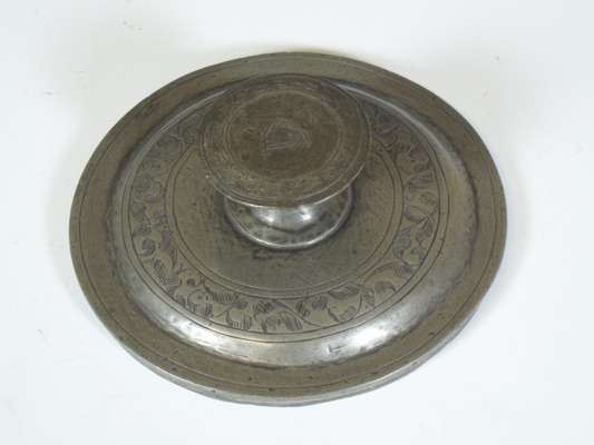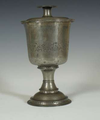 bell bowl, concave reeded stem and domed foot, engraved foliate borders and punch marked inscription 'Tobias Matthew Durham'