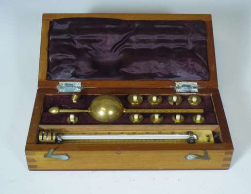 including: a mahogany and brass three drawer telescope, 84cm long extended; a cased Sike's Hydrometer; a cased spherometer, by Harvey & Peak, London; a cased compass; a German cased calculating slide rule; two copper printing plates; and miscellaneous items (qty)