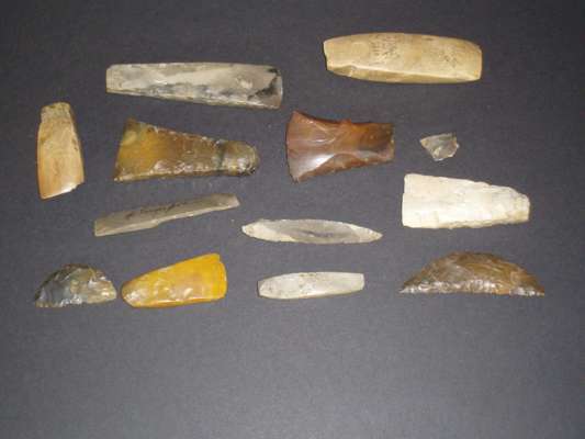 A collection of mostly Neolithic Scandinavian flint implements, circa 2000 B.C.