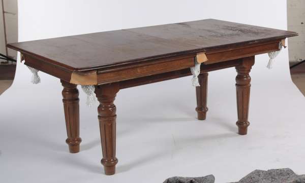 An oak quarter size snooker table Stamped '51034 E.J. Riley Ltd Accrington'