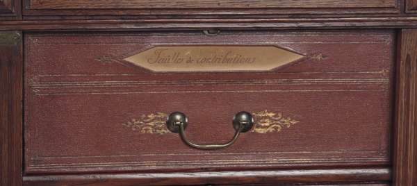 A 19th century oak Wellington chest Stamped 'A la Rotonde, Melurlesde Bureaun, Maherault Paris'