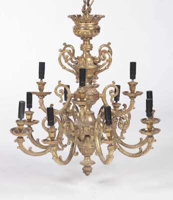the shaped column with two tier of scrolling foliate cast branches terminating in drip-trays