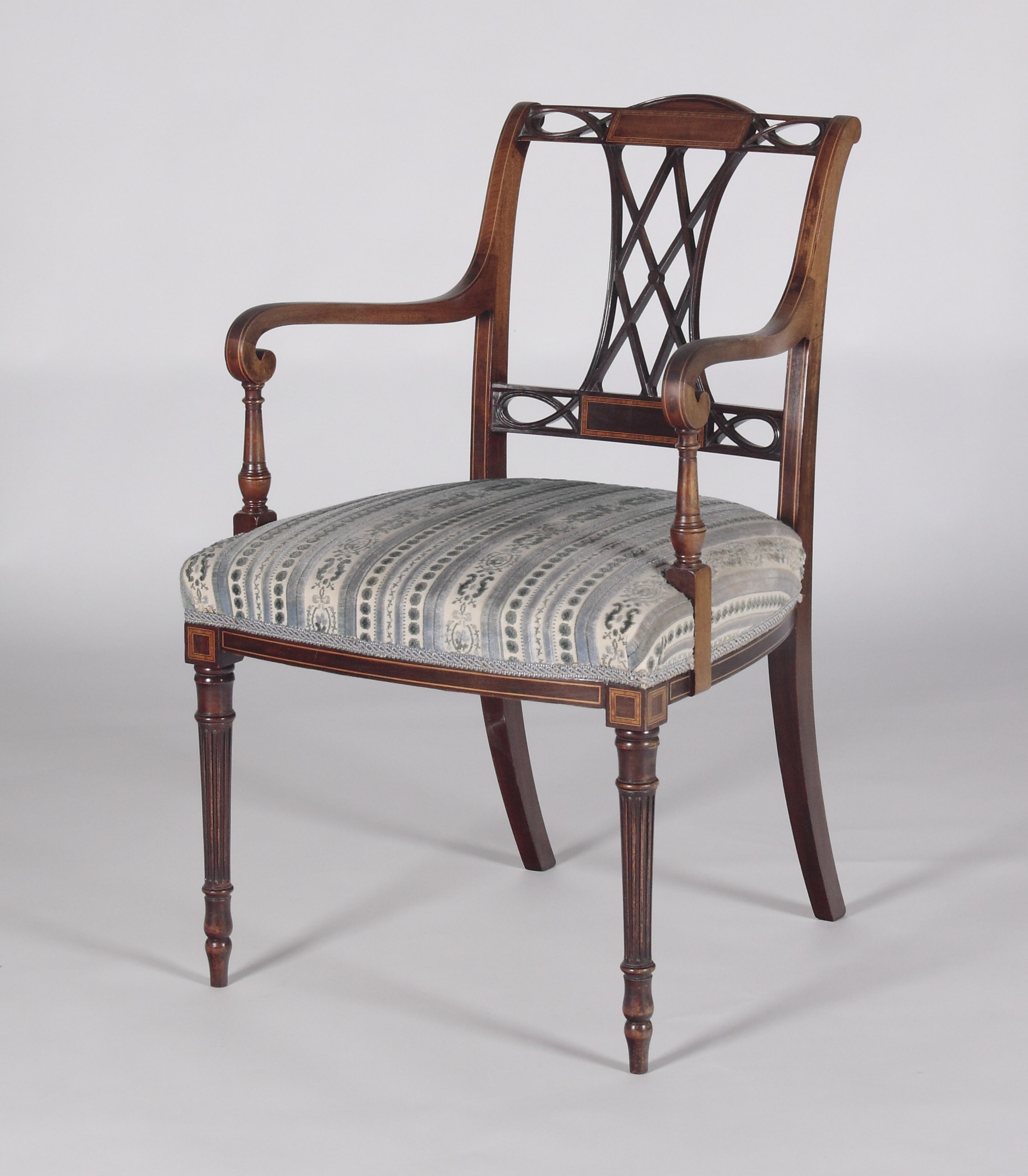 An early 20th century mahogany inlaid arm chair In the Regency Style