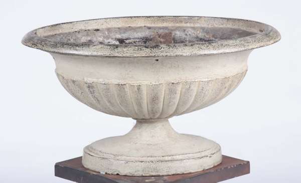 An early 20th century cast iron oval urn