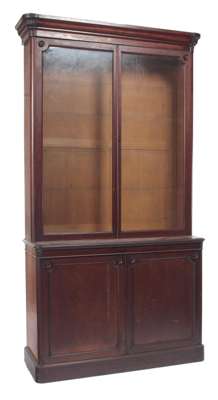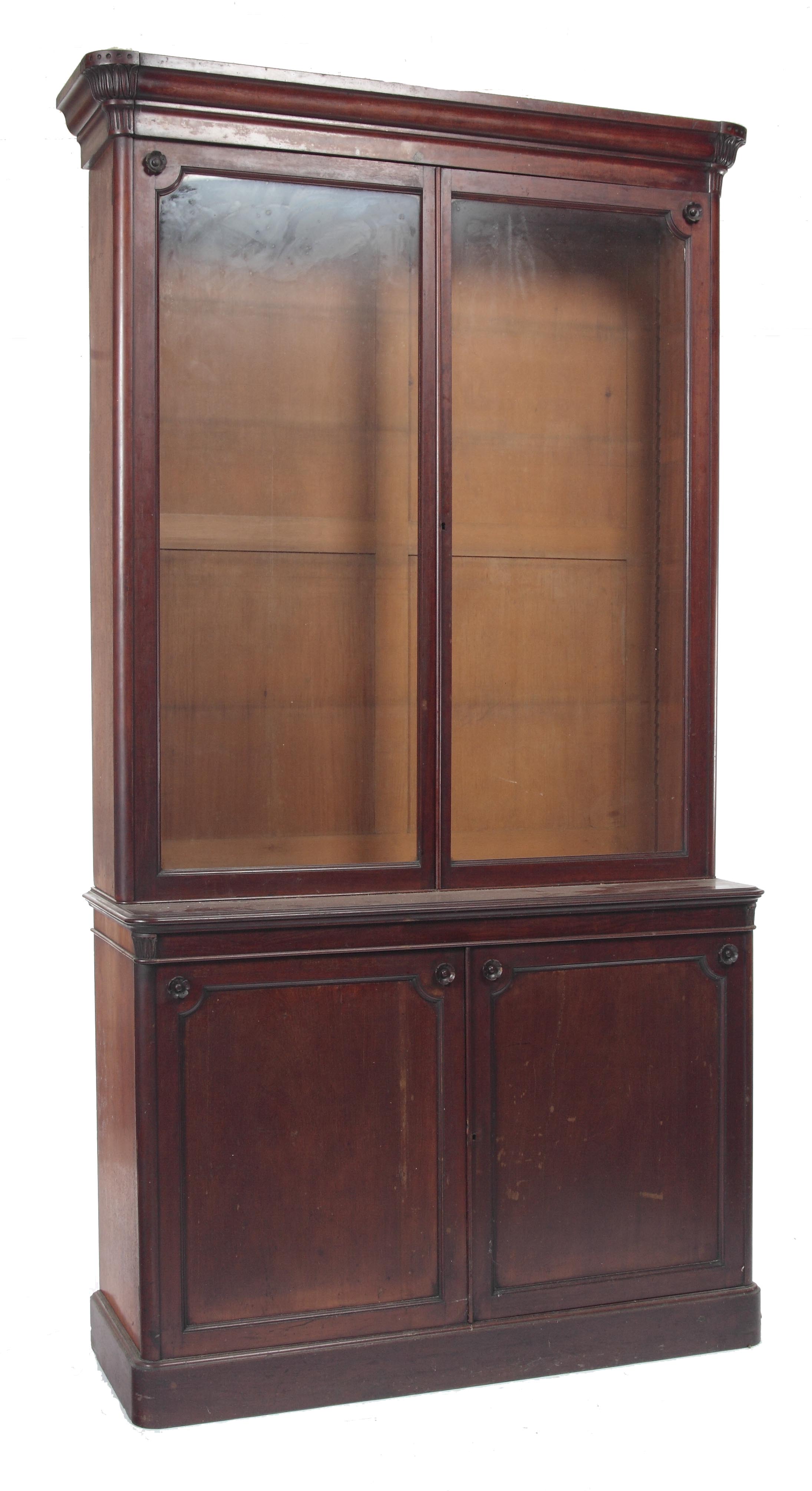 the projected moulded cornice over two glazed doors with carved rosettes, two panelled doors raised on plinth base