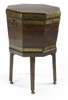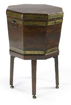A George III mahogany and brass bound octagonal wine cooler