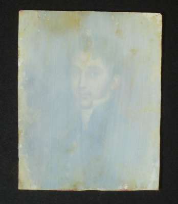 wearing a blue tunic, watercolour on ivory, of rectangular form, 7.5cm x 6cm; and a portrait miniature of a lady, watercolour on ivory, of rectangular form, 10.5cm x 7.5cm (2)