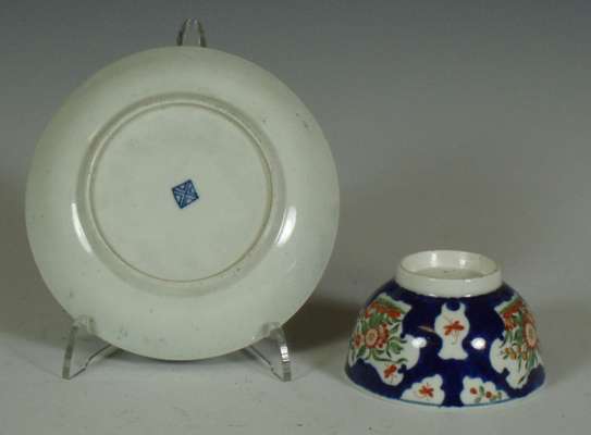 each with blue painted square mark; and a bowl and saucer with similar decoration, blue painted square mark (8)