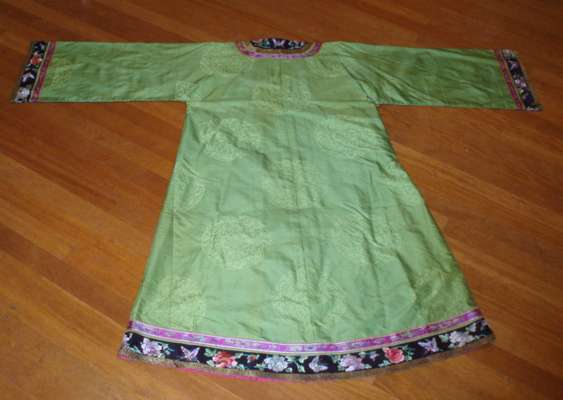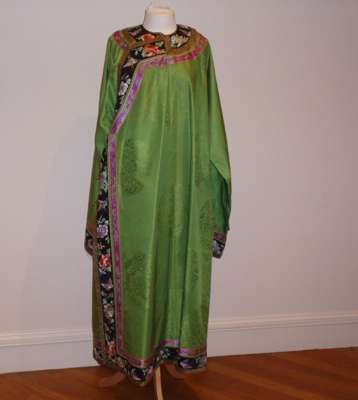 An early 20th century Chinese green silk day robe