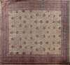 early 20th century, the cream field with allover palmette and angular vine pattern, within similar red border between bands