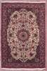 modern, the cream field with central indigo medallion suspending pendants, similar spandrels, within similar indigo border between bands