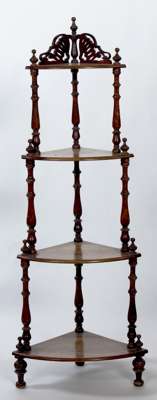 A Victorian walnut and inlaid corner whatnot