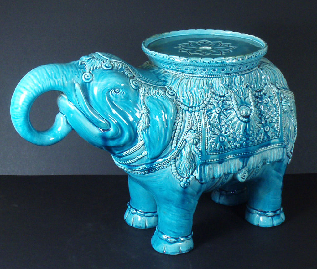 A turquoise glazed elephant plant stand Possibly Burmantofts pottery