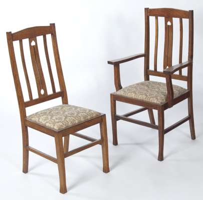 A set of six aesthetic movement oak high back dining chairs
