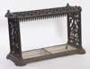 of rectangular form with twenty-four apertures, rope twist handles, raised on pierced foliate fretwork supports over two drip trays, moulded plinth base