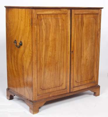 the moulded rectangular top over two panelled doors enclosing slides raised on bracket feet