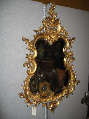 the cartouche shaped plate within rocaille carved and pierced frame with rococo pendant