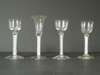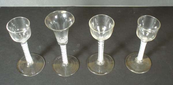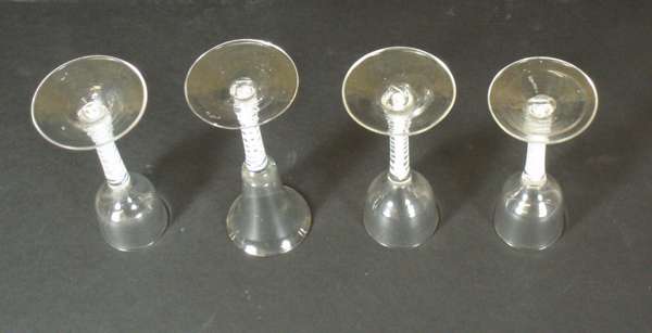each with ogee bowl, opaque white air twist stem and conical foot, 14.5cm high; and a glass with trumpet bowl, opaque white airtwist stem and conical foot, 16cm high (4)