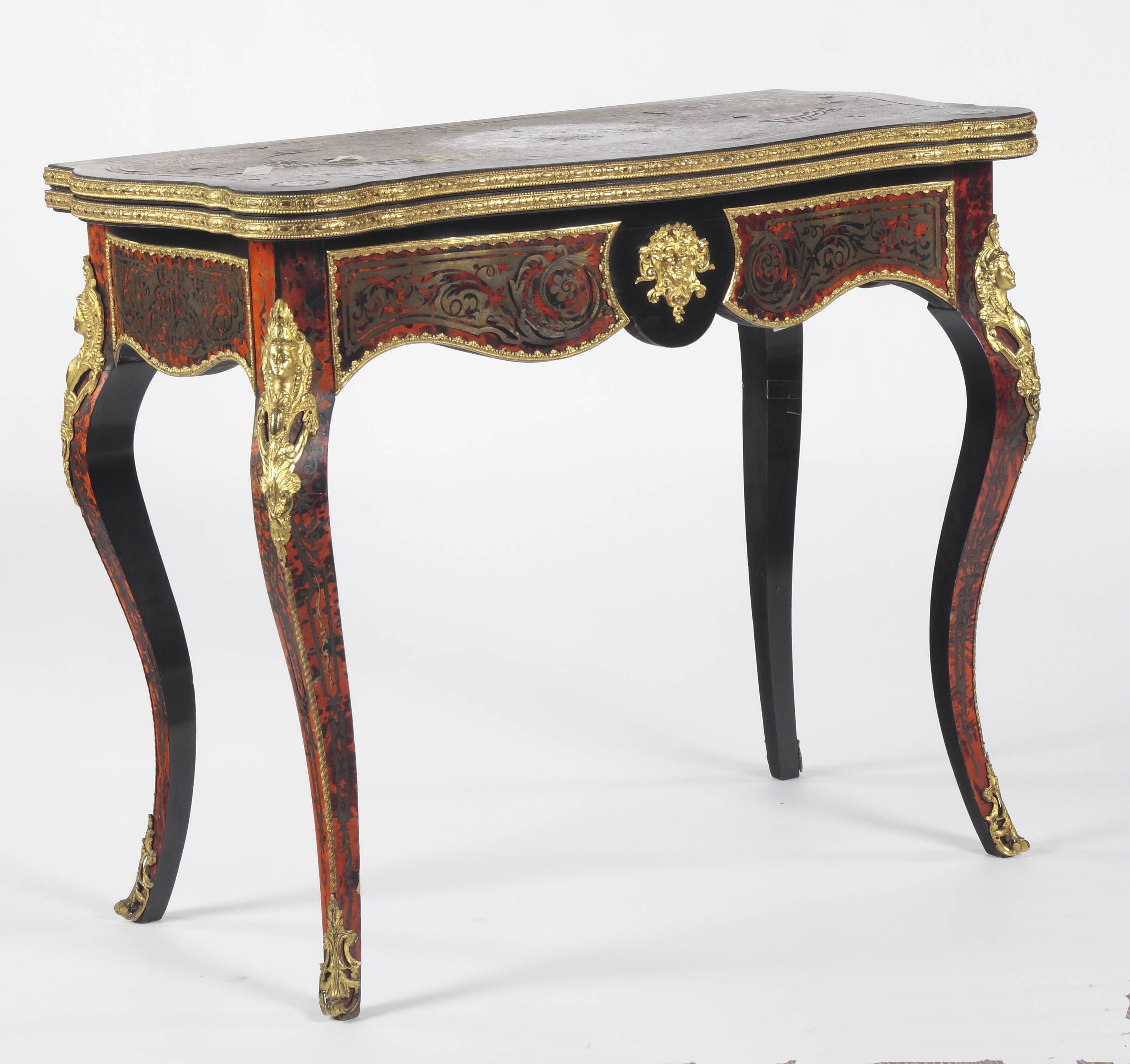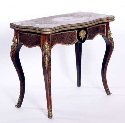 A late 19th century serpentine ebonised and Boulle work card table