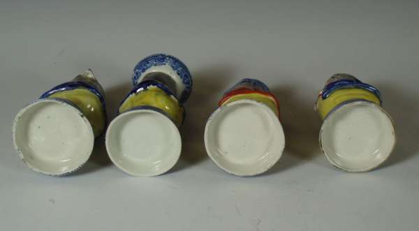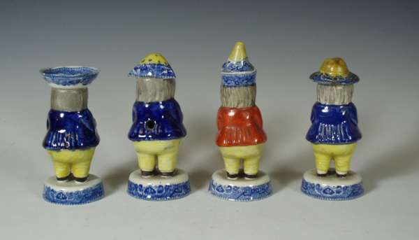 A group of four Scottish pottery 'Toby' figure condiment pots Probably Prestonpans