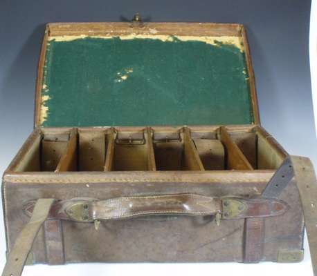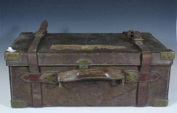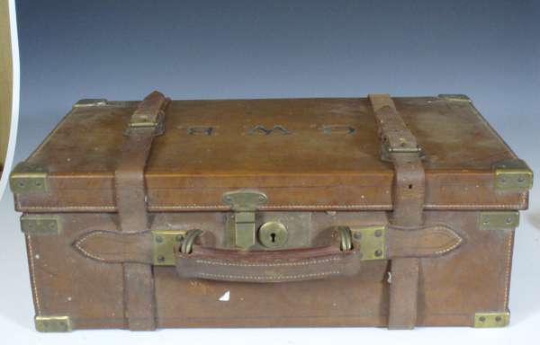 each bound with brass corners, one with John R Gow, Union Street, Dundee trade card, 46cm wide, 17cm high, 30cm deep; the other without a trade card, 48cm wide, 17cm high, 32cm deep (2)