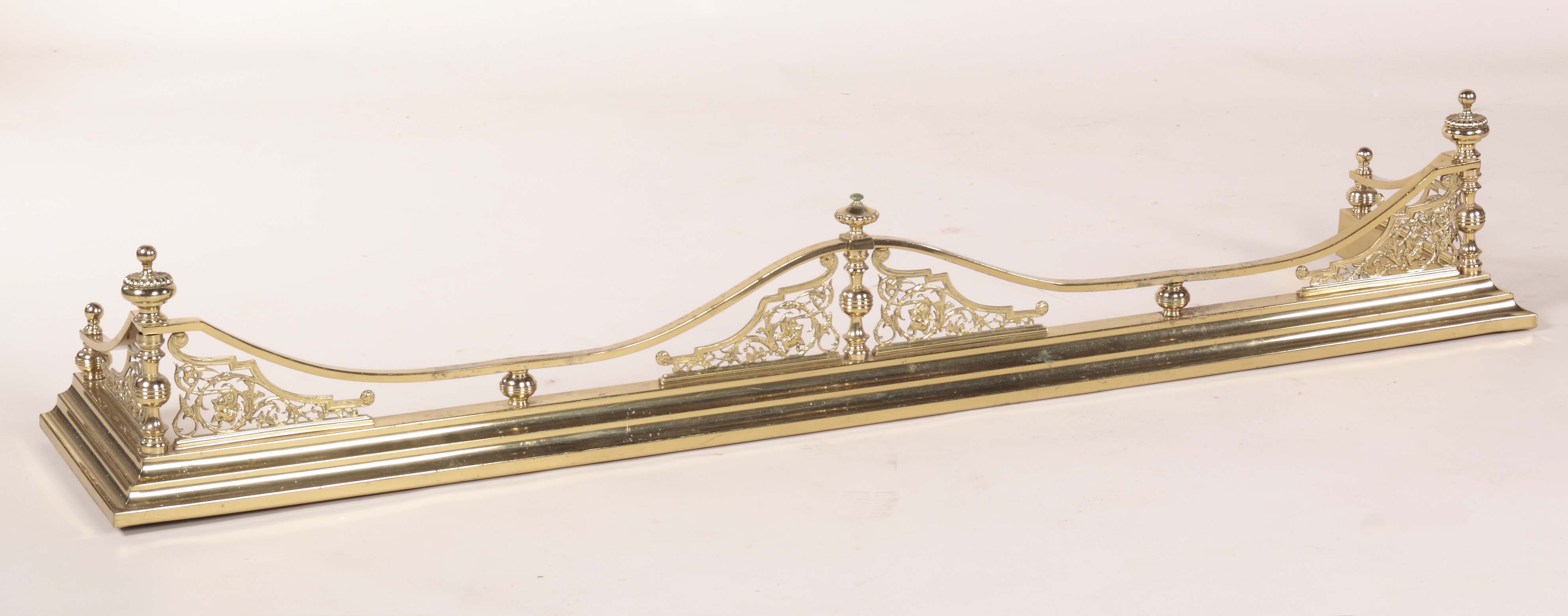 the serpentine top-rail mounted with urn finials over pierced foliate spandrels raised on stepped plinth base