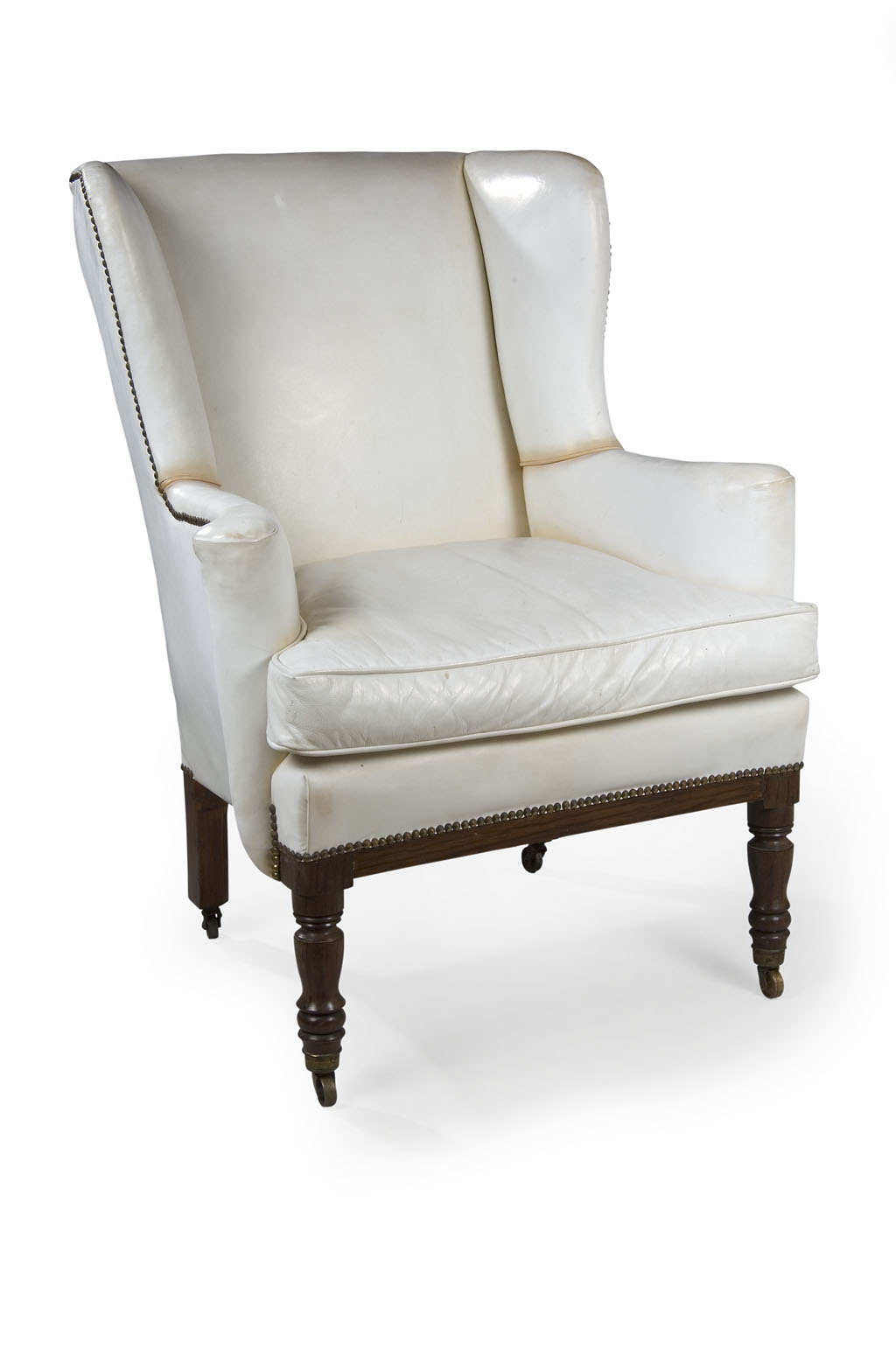 A George IV simulated rosewood and white leather wing armchair, circa 1825